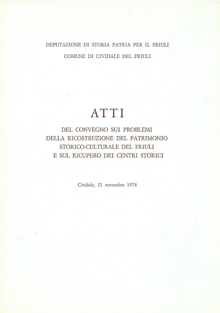 Atti del Convegno sui problemi della ricostruzione del patrimonio storico-culturale del Friuli e sul recupero dei centri storici, (Cividale, 21 novembre 1976)
